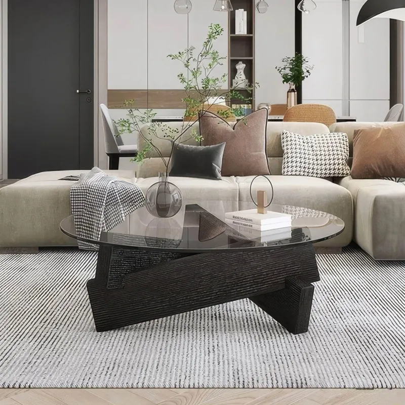Dieser moderne Couchtisch aus Holz ist ein faszinierendes Herzstück und verbindet harmonisch zeitgenössische Eleganz mit natürlicher Ästhetik. Die elegante Glasplatte verstärkt die Helligkeit des Raumes, lässt das Licht reflektieren und schafft eine warme, einladende Atmosphäre. Der markante Unterbau, getragen von drei sorgfältig aufeinandergesetzten Holzbeinen, bietet eine wunderschöne Mischung aus erdiger Wärme und raffinierter Eleganz. Mit seiner großzügigen Oberfläche eignet sich dieses vielseitige Möbelstück perfekt für Ihren Morgenkaffee oder die Bewirtung von Freunden und ist stilvoll und praktisch zugleich für jeden Wohnraum. Erleben Sie die ideale Verbindung von Design und Funktionalität mit diesem Beistelltisch, der Ihre Wohnkultur aufwertet. Entdecken Sie weitere stilvolle Lösungen für Ihr Zuhause bei Decor.