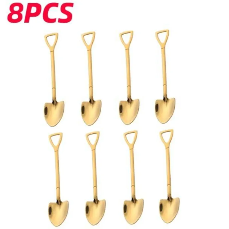 Wir präsentieren ein entzückendes Set Dessertlöffel in Schaufelform, die Ihrem kulinarischen Erlebnis eine verspielte Note verleihen. Diese neuartigen Kaffeelöffel sind einzigartig gestaltet und ähneln Miniaturschaufeln. Sie sind aus poliertem, hochwertigem Edelstahl gefertigt und sorgen für ein glattes und elegantes Finish. Sie sind vielseitig einsetzbar und können als Dessertlöffel, Teelöffel, Kaffeelöffel, Zuckerlöffel und vieles mehr verwendet werden. Damit sind sie eine tolle Ergänzung für jede Küche.