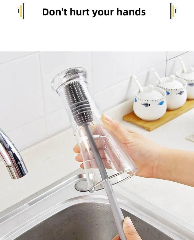 Die Silikon-Glasreinigungsbürste mit langem Griff reinigt mühelos eine Vielzahl von Behältern und ist somit ein unverzichtbares Werkzeug für Ihren täglichen Bedarf. Dank des langen Griffs erreichen Sie mit dieser Bürste mühelos den Boden von Tassen, Bechern und anderen schmalen Gefäßen. Ob Kaffeetassen, Babyflaschen, Geschirr, Teetassen oder Wasserflaschen – diese Bürste erweist sich als zuverlässiger Helfer im Haushalt.