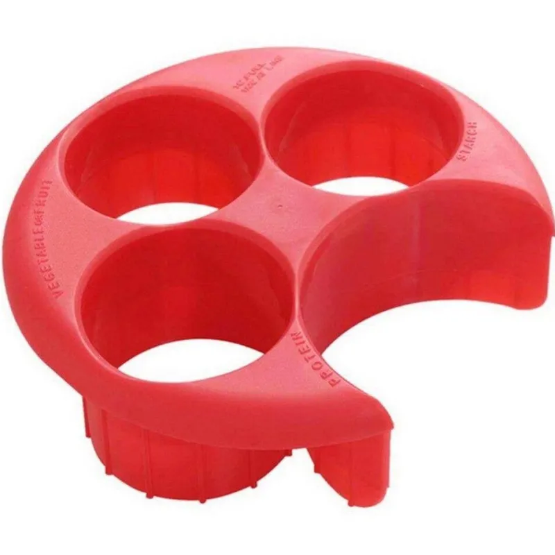 Dieses benutzerfreundliche Werkzeug eignet sich perfekt zum Abmessen Ihrer Speisen direkt auf dem Teller. So können Sie Ihre Mahlzeiten genießen, ohne zu viel zu essen. Das Meal Measure passt auf die meisten Standard-Essteller und erleichtert Ihnen das Servieren. Jede Vertiefung ist deutlich für Gemüse oder Obst, Stärke und Protein gekennzeichnet, sodass Sie mühelos einen ausgewogenen Teller zusammenstellen können. Die Vertiefungen fassen oben bis zu einer Tasse, innen befindet sich eine Markierung für eine halbe Tasse für präzises Abmessen.