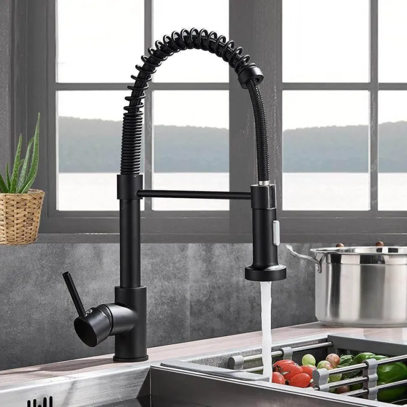 Diese Küchenarmatur mit Sprühfunktion aus massivem Messing ist langlebig und zuverlässig und zeichnet sich durch hohe Korrosions- und Verschleißfestigkeit aus. Der um 360° schwenkbare Auslauf mit flexibler Feder ermöglicht es Ihnen, jeden Winkel Ihrer Spüle mühelos zu erreichen. Genießen Sie die Vielseitigkeit der zwei Sprühfunktionen – wechseln Sie einfach mit dem praktischen Knopf am Auslauf zwischen Sprüh- und Strahlmodus. Die Einstellung von Wassertemperatur und -durchfluss erfolgt ganz einfach über den Einhebelhebel und ist somit benutzerfreundlich.