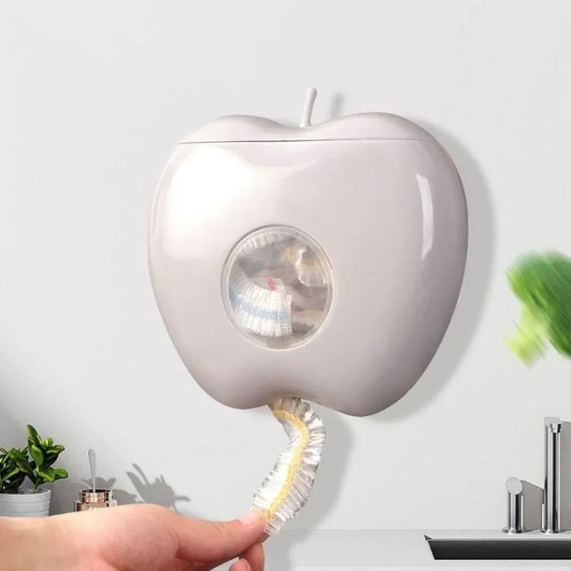 1x Apfelförmiger Wandspender für Frischhaltefolie.