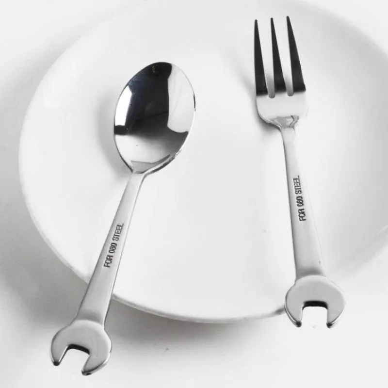 1x Kreatives Besteckset in Schraubenschlüsselform mit Gabel und Löffel