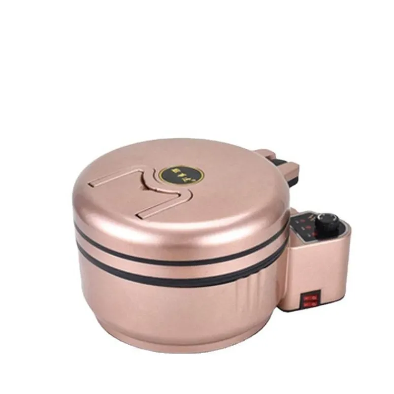 Diese elektrische Kuchenform aus robustem Edelstahl verfügt über einen mechanischen Betrieb für eine unkomplizierte Bedienung. Das doppelseitige Heizdesign sorgt für gleichmäßiges Backen, und die einseitig abnehmbare Lötplatte ermöglicht eine einfache Wartung.