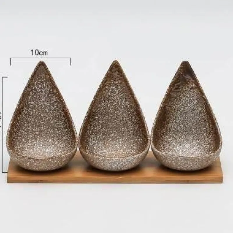 1 x 3er-Set Snackteller mit Holztablett – ideal für die stilvolle Präsentation Ihrer Lieblingssnacks. Verschönern Sie Ihre Gäste mit diesem charmanten Geschirr, das Kunstfertigkeit und Funktionalität vereint.