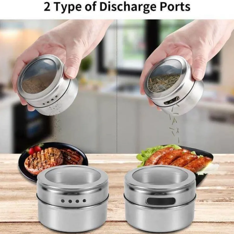 Verbessern Sie Ihre Küchenorganisation mit unserem magnetischen Gewürzdosen-Set. Es enthält langlebige Gewürzbehälter aus Edelstahl, die Stil und Funktionalität vereinen. Die aus hochwertigem 304 Edelstahl gefertigten Gläser sind rostbeständig und leicht zu reinigen. So bleiben Ihre Gewürze frisch und sicher. Die transparenten Deckel aus umweltfreundlichem PET-Kunststoff bieten einen klaren Blick auf den Inhalt und ermöglichen Ihnen die Identifizierung Ihrer Gewürze auf einen Blick.