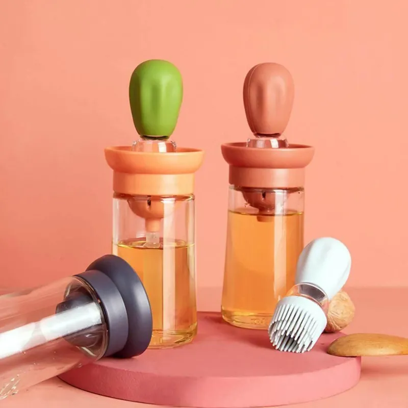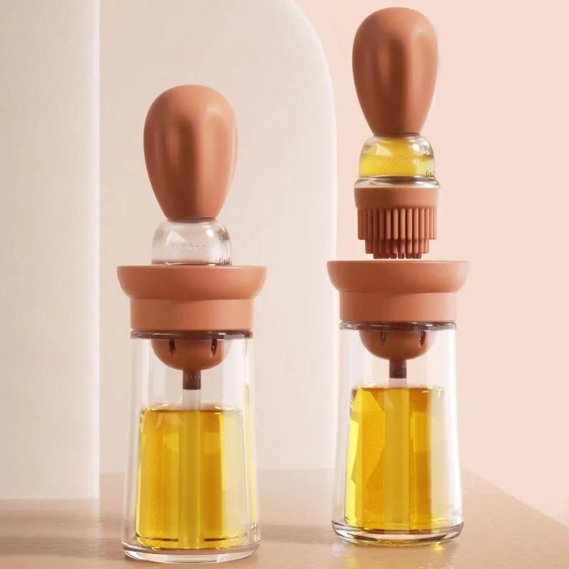 Die fest am Deckel befestigte Silikonbürste ermöglicht ein gleichmäßiges Auftragen des Olivenöls auf Ihre Lieblingsgerichte, egal ob Sie Gemüse braten oder Fleisch grillen. Dieses tragbare Ölflaschenbürsten-Set eignet sich ideal für den Einsatz in der Küche, beim Grillen im Freien oder bei Selbstbedienungsveranstaltungen in Hotels und ist eine praktische Ergänzung für jede Kochgelegenheit.