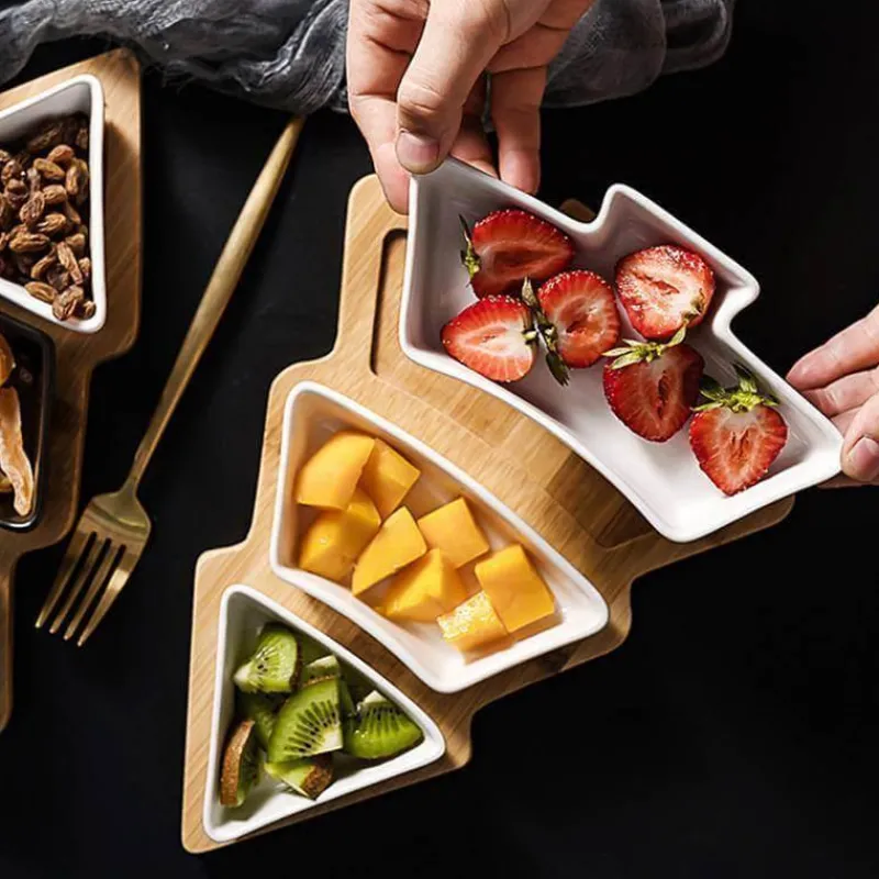 Verschönern Sie Ihre Feiertage mit unseren entzückenden Keramiktellern in Weihnachtsbaumform, perfekt ergänzt durch einen natürlichen Bambusständer. Dieses elegante Serviertablett aus hochwertiger Keramik und umweltfreundlichem Bambus vereint Kreativität mit Funktionalität.