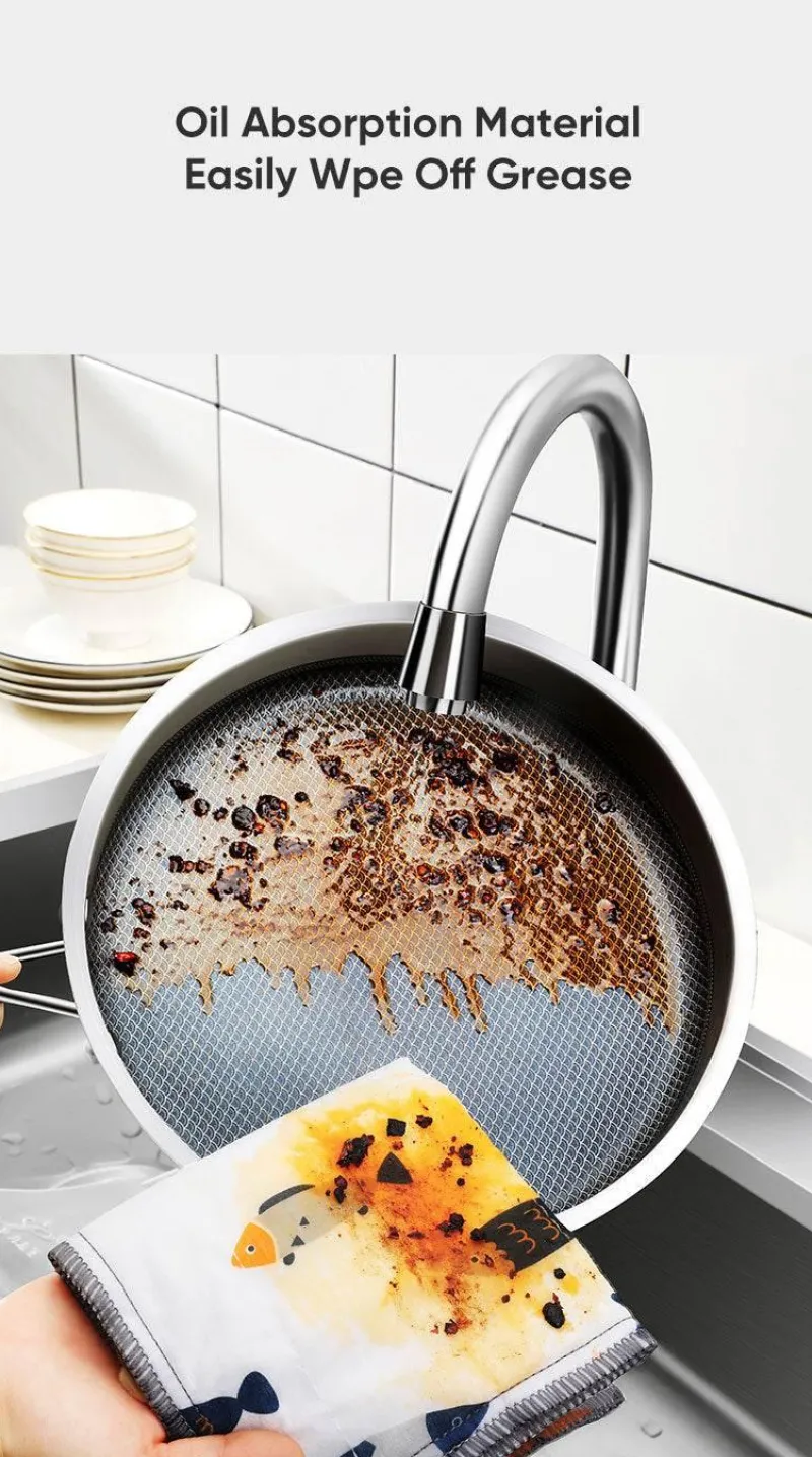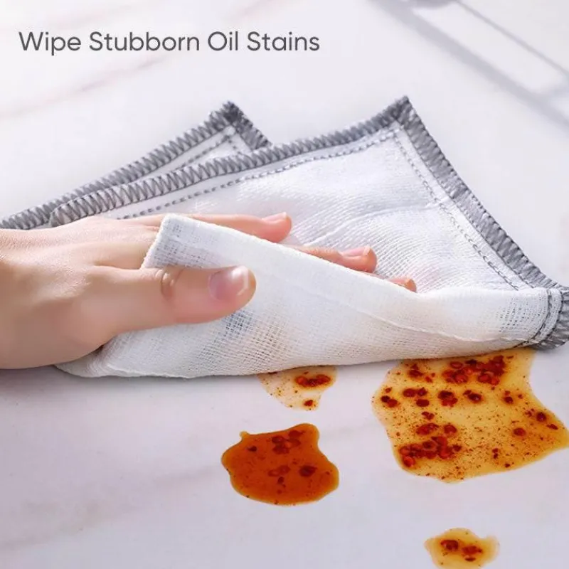 Diese Tücher bestehen aus acht Lagen Baumwolle und sind so konzipiert, dass sie während des Gebrauchs nicht fusseln und so eine effektive und zuverlässige Reinigungsleistung bieten. Sie lösen fettigen Schmutz auf natürliche Weise mit nur Wasser und sorgen so für müheloses und effizientes Reinigen in der Küche.