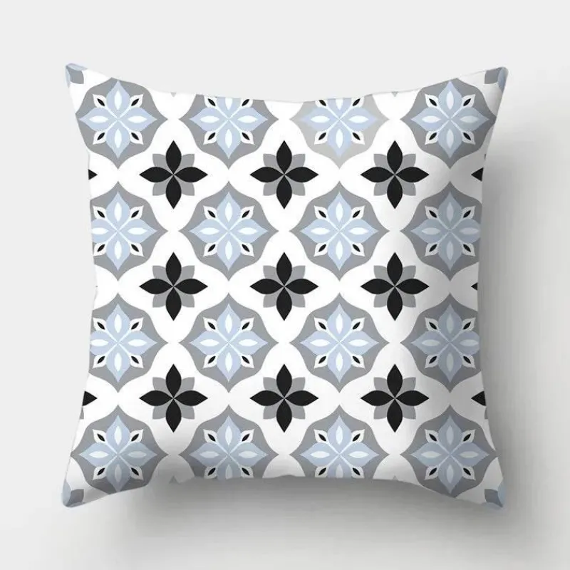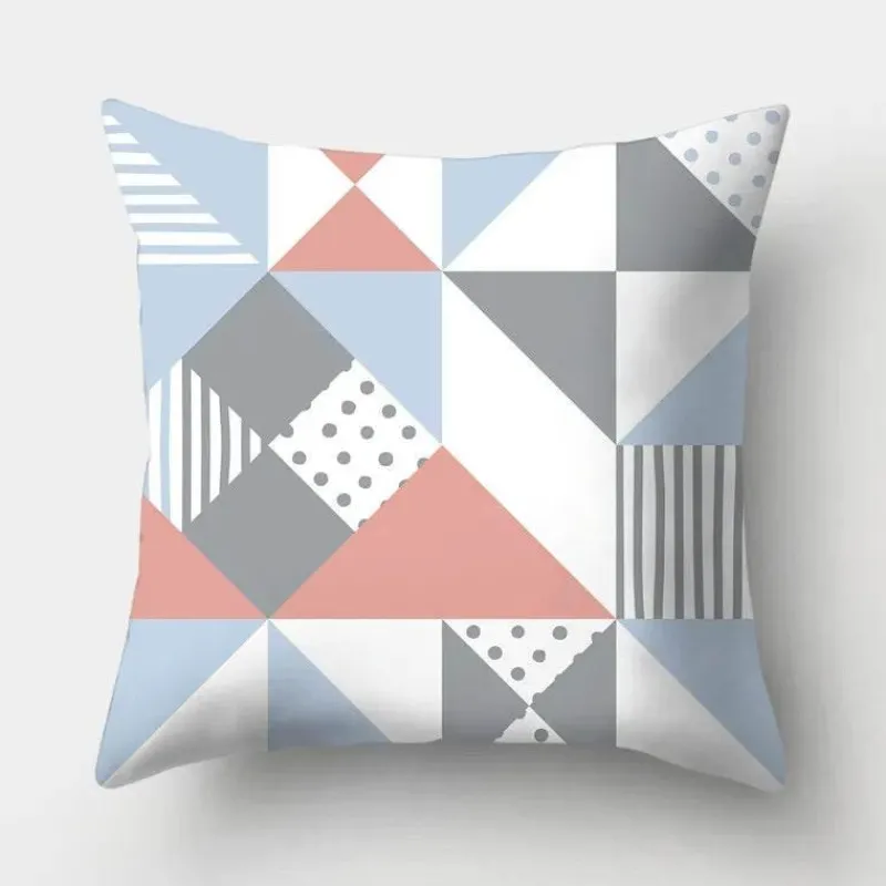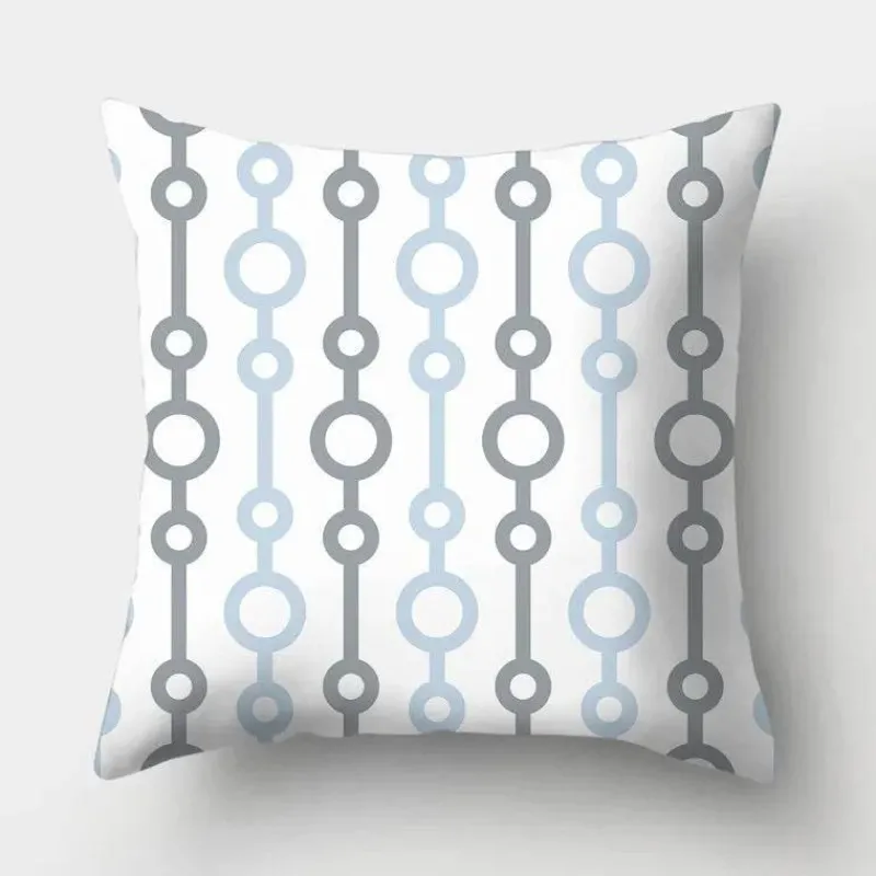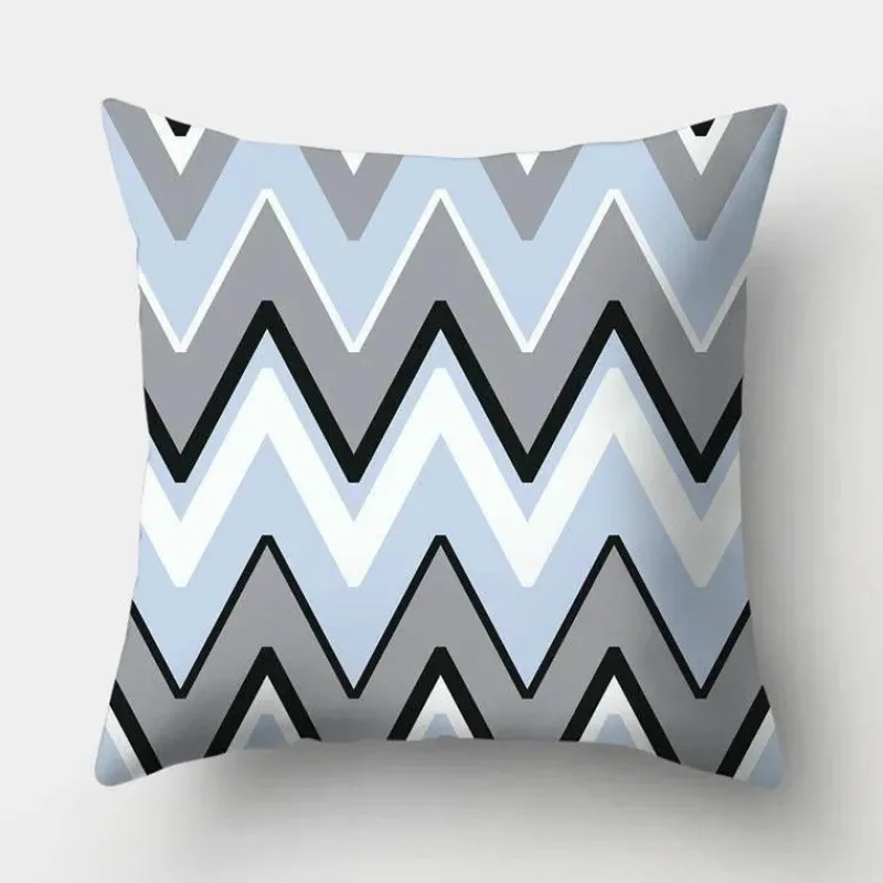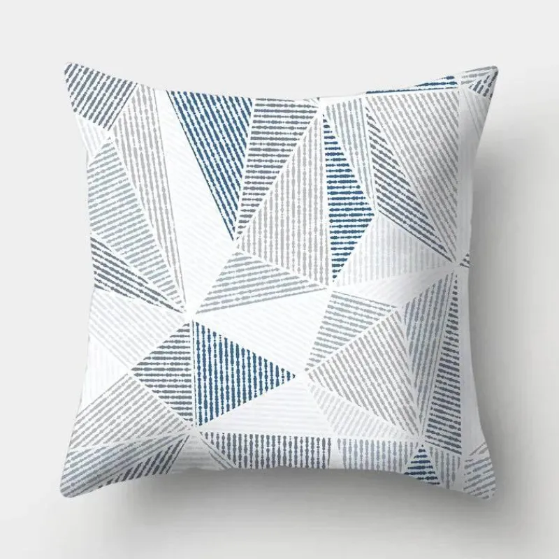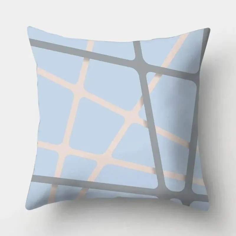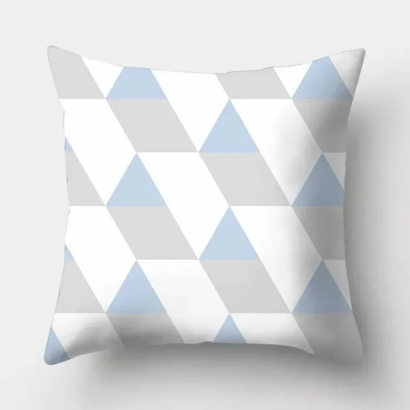Diese Kissenbezüge aus hochwertigem 100 % Polyester bieten ein weiches, luxuriöses Gefühl und sind gleichzeitig langlebig und pflegeleicht. Das auffällige geometrische Design verleiht Ihrer Einrichtung ein modernes Flair, während der beruhigende Hellblauton jedem Raum eine ruhige Atmosphäre verleiht.