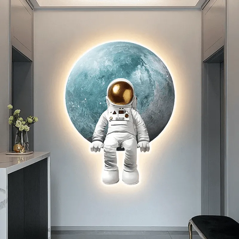 Im Lieferumfang enthalten ist eine 3D-Astronauten-Wandleuchte, die nicht nur Ihren Raum erhellt, sondern auch als markantes Herzstück Ihrer Einrichtung dient. Dieses Stück ist eine hervorragende Ergänzung für jeden von Träumen und Entdeckungen inspirierten Raum und bietet eine praktische Lösung, um den optischen Charme Ihres Zuhauses zu steigern. Entdecken Sie mehr bei Decor .