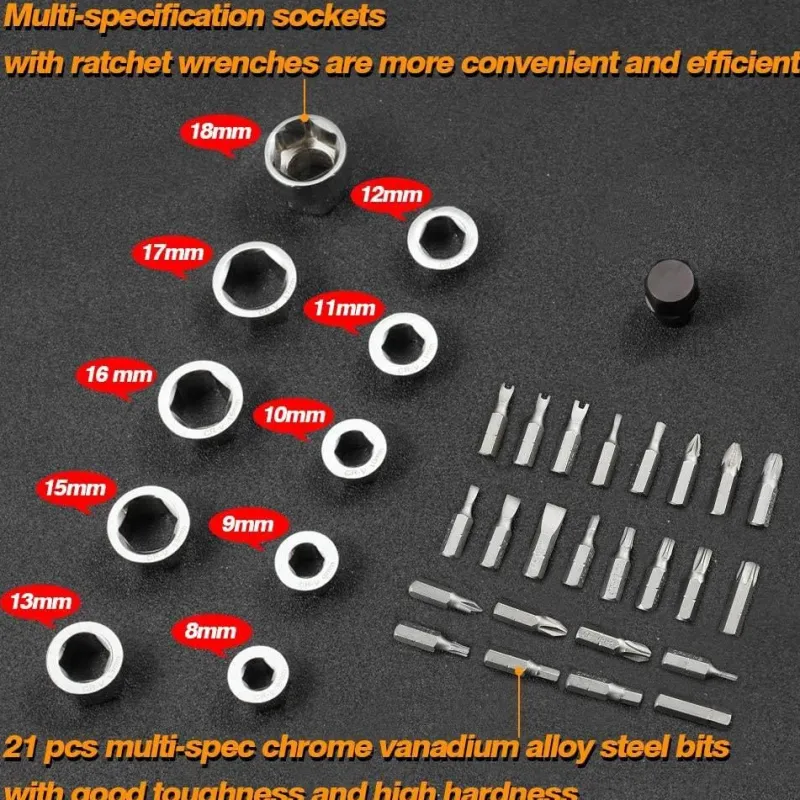 1x Ratchet-Tactic Master Multitool-Schraubenschlüsselsatz. Dieser All-in-One-Werkzeugsatz wurde entwickelt, um Ihren Werkzeugkasten zu erweitern und eine Vielzahl von Reparatur- und Wartungsaufgaben präzise zu rationalisieren.