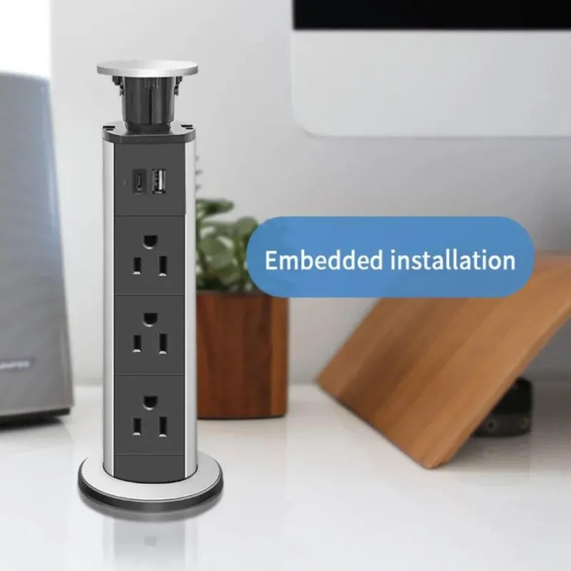 Erleben Sie die praktische Funktion unseres Pop-up-Steckdosenleisten-Organizers. Er wurde speziell für Schreibtische und Tische entwickelt und sorgt mit einer effizienten Kabelmanagementlösung für einen optimierten Arbeitsplatz. Dieses moderne amerikanische Pop-up-Design vereint Stil und Funktionalität und bietet mühelosen Zugang zu Strom, wenn Sie ihn am meisten brauchen.