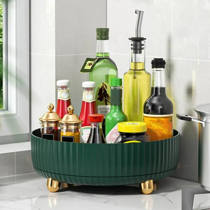 Dieser drehbare Gewürz-Organizer optimiert nicht nur Ihre Arbeitsfläche, sondern hält auch alles Wichtige griffbereit. Sein schlankes und modernes Design fügt sich nahtlos in jede Kücheneinrichtung ein und macht ihn zu einer praktischen und stilvollen Ergänzung für Ihr Zuhause. Erleben Sie den Komfort, Ihre Gewürze übersichtlich und griffbereit aufzubewahren – das wertet Ihr Kocherlebnis und die Optik Ihrer Küche auf.