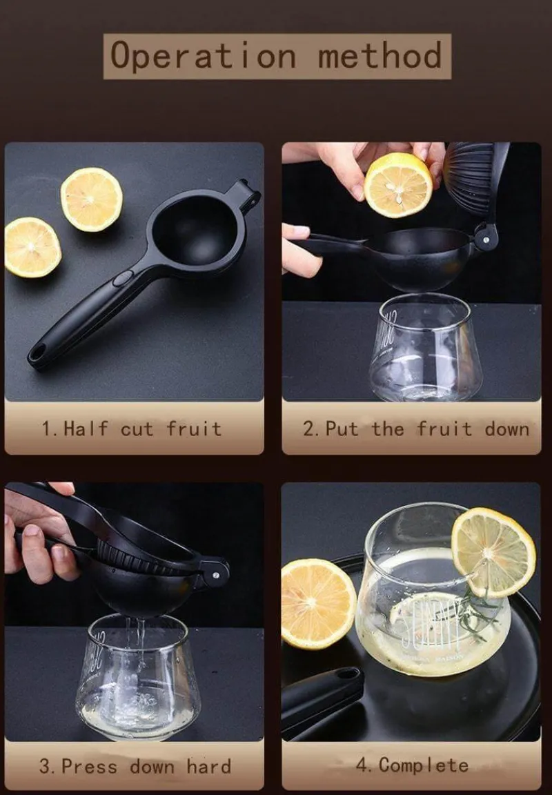 Für erfrischenden Zitronensaft schneiden Sie einfach eine Zitrone in zwei Hälften, legen sie in die Presse und drücken leicht auf den Griff. Das horizontale Design ermöglicht effizientes Entsaften und macht die Presse zu einer praktischen Ergänzung für Ihre Küche. Ob Sie Ihrem Lieblingsgericht oder Cocktail einen Spritzer Zitrone hinzufügen – diese Saftpresse ist ein zuverlässiges Werkzeug für jeden Zitrusliebhaber.