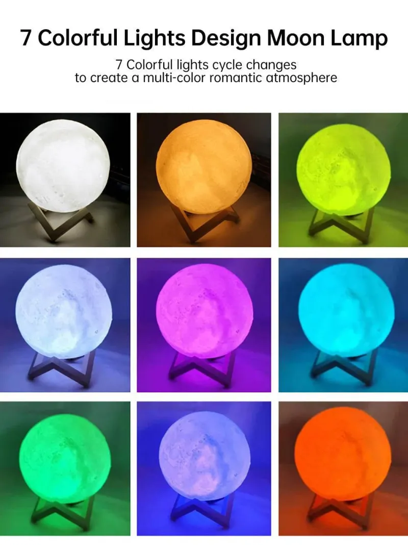 The 3D Moon Night Lamp is designed to enhance your sleep quality and help you wake up feeling refreshed. The soft glow of the lamp mimics the gentle illumination of moonlight, known for its calming effects, making it an ideal companion for a peaceful night’s rest. It also features a convenient alarm clock function, allowing you to set a wake-up time at your preference, whether it’s day or night. This lamp makes a thoughtful gift for anyone looking to improve their sleep and reduce everyday stress.
