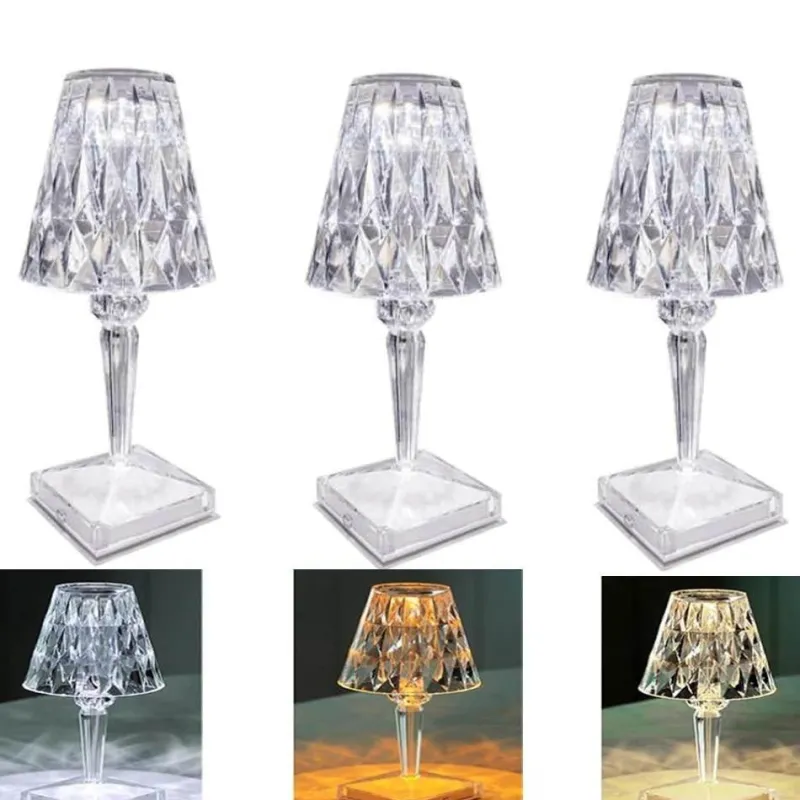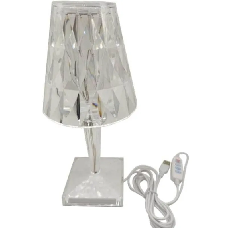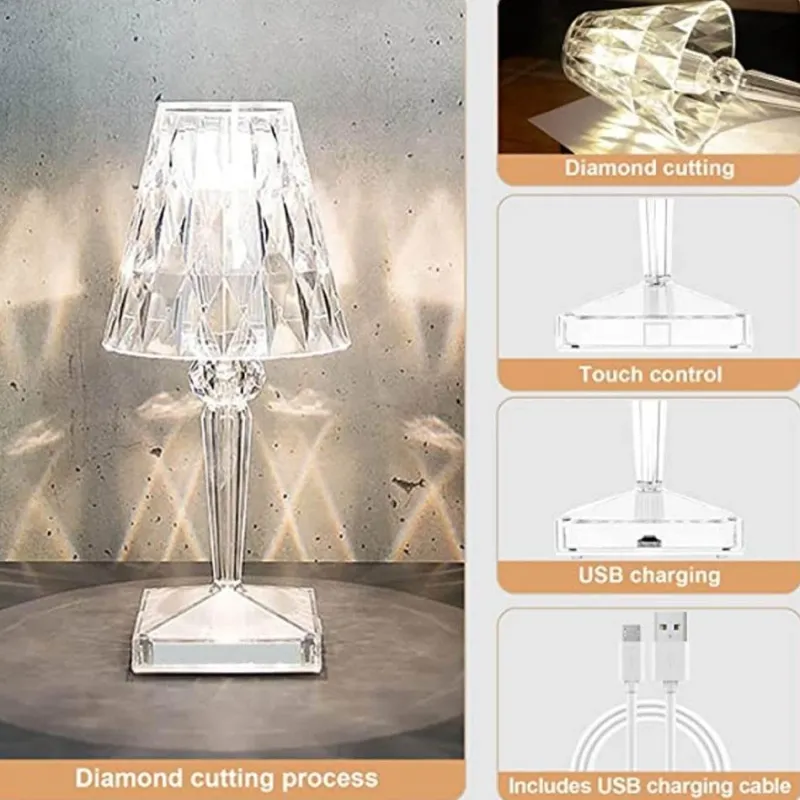 Elevate your space with this stylish diamond acrylic desk lamp, featuring a high-quality LED light source imported from exquisite crystal. This lamp seamlessly blends artistic aesthetics with an elegant atmosphere, showcasing exquisite craftsmanship and innovative design. Its versatility makes it an ideal addition to bedrooms, living rooms, hotels, offices, libraries, and as a thoughtful gift.