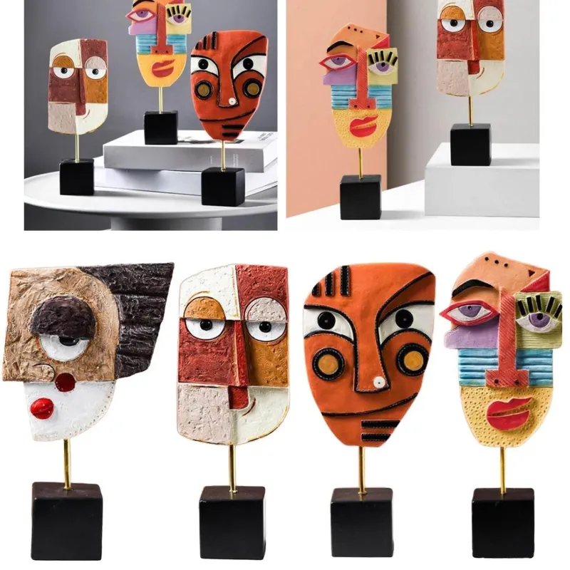 Verschönern Sie Ihr Wohnambiente mit dieser markanten abstrakten Gesichtsskulptur, einem Stück moderner Pop-Art, das jedem Raum Kreativität verleiht. Diese faszinierende Skulptur eignet sich ideal für Schreibtisch, Tisch, Bücherregal, Esstisch oder Nachttisch und ist ein Blickfang in Ihrer Wohnkultur.