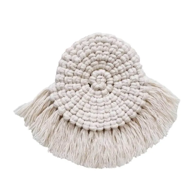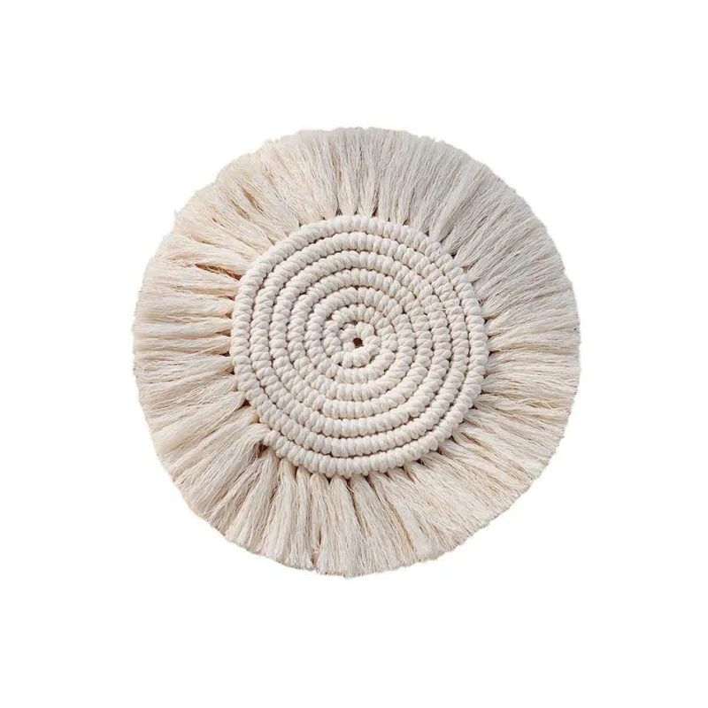 Der handgefertigte nordische Makramee-Untersetzer ist ein umweltfreundliches Accessoire, das Ihre Möbel vor Wasserflecken und Flecken schützt. Hergestellt aus 100 % Baumwollseil und natürlicher Jutekordel, bietet dieser langlebige Untersetzer nicht nur Funktionalität, sondern ist auch leicht zu reinigen und somit ideal für den täglichen Gebrauch.