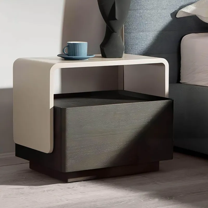 Wir präsentieren den Nachttisch Josue, eine exquisite Verkörperung minimalistischen Designs, das Form und Funktion harmonisch vereint. Gefertigt aus hochwertigem amerikanischem Eichenholz, besticht dieser Nachttisch durch seine langlebige Einbrennlackierung, die seine schlichte Eleganz unterstreicht.