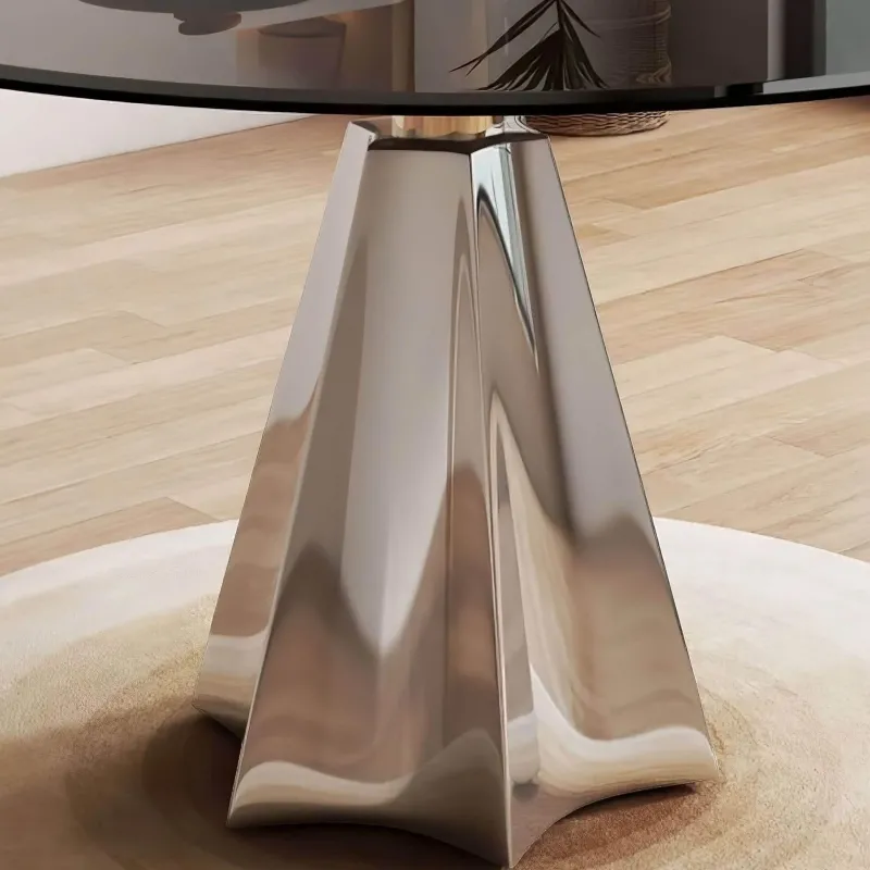 Die Tischplatte aus gehärtetem Glas ist sowohl schön als auch praktisch und bietet eine glatte Oberfläche, die Ihrem Essbereich eine edle Note verleiht. Das langlebige Material ist leicht zu reinigen und zu pflegen, sodass Ihr Tisch sowohl bei geselligen Zusammenkünften als auch bei alltäglichen Mahlzeiten ein Mittelpunkt bleibt.