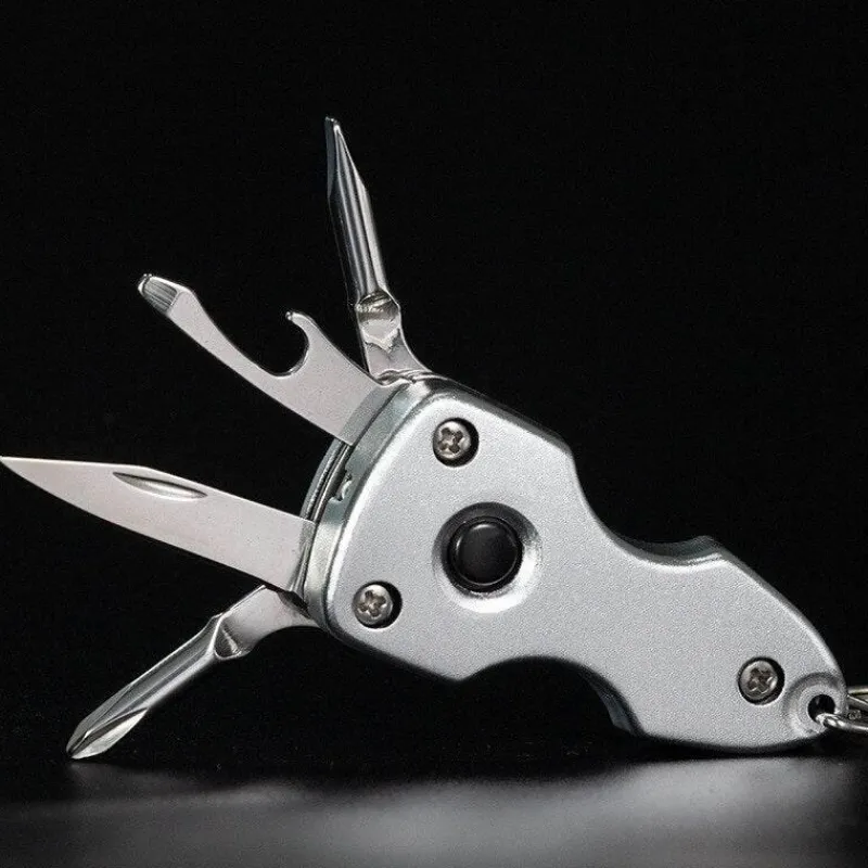 Mit seiner eleganten Edelstahlkonstruktion und praktischen Funktionalität ist der 6-in-1-Edelstahl-Adventure-Pro-Tool-Schlüsselanhänger ein unverzichtbares Accessoire für Outdoor-Enthusiasten oder alle, die den Komfort mehrerer Werkzeuge in einem kompakten Format suchen.