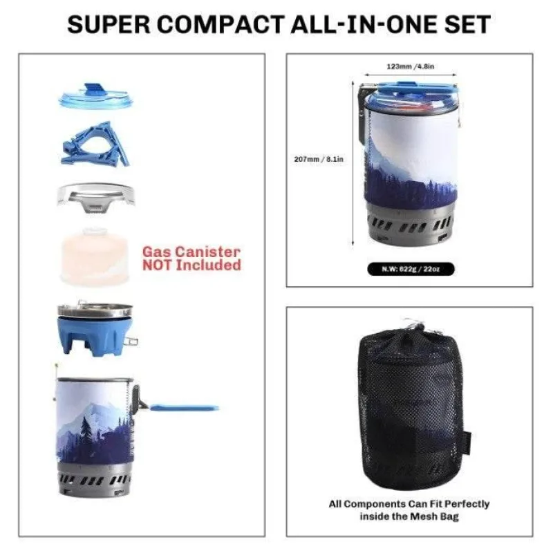 Entdecken Sie den Komfort des Outdoor-Kochens mit diesem Schnellkochkocher, der speziell für begeisterte Camper und Abenteurer entwickelt wurde. Dank seiner schnellen Erwärmung können Sie mit diesem Kocher Mahlzeiten zubereiten und Wasser in deutlich kürzerer Zeit kochen – für ein noch angenehmeres Outdoor-Erlebnis. Sein kompaktes Design ermöglicht einen einfachen Aufbau und macht ihn zur idealen Wahl für Campingausflüge, Wanderungen oder andere Outdoor-Aktivitäten, die eine zuverlässige Wärmequelle erfordern.