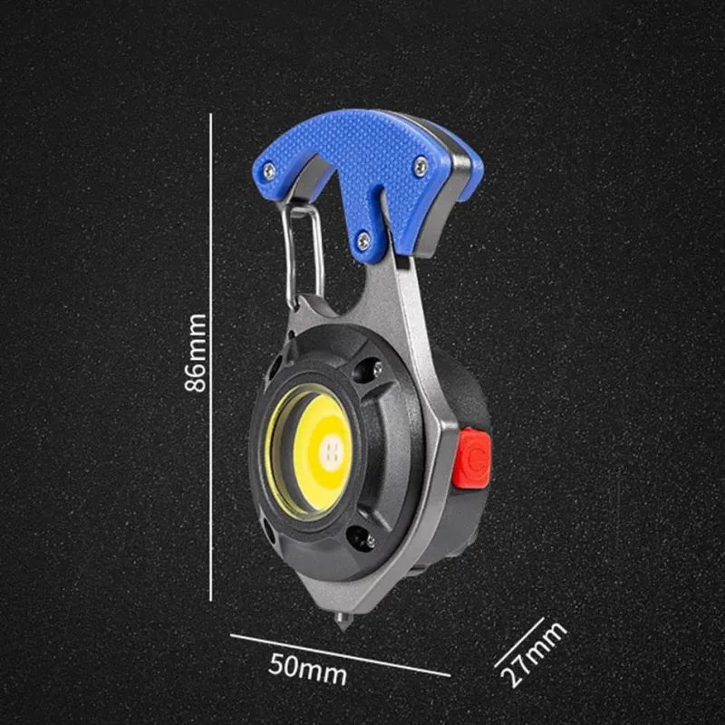 Die Typ-C-Ladeschnittstelle sorgt für effizientes Laden, während der Lithium-Polymer-Akku über eine Ladestandsanzeige verfügt und so für langanhaltende Leistung sorgt. Seine Multifunktionsfunktionen umfassen Flaschenöffner, Fensterhammer, Schraubendreher, Gurtschneider und Arbeitsleuchte und machen ihn zum idealen Begleiter für Wanderungen, Camping und Abendaktivitäten.