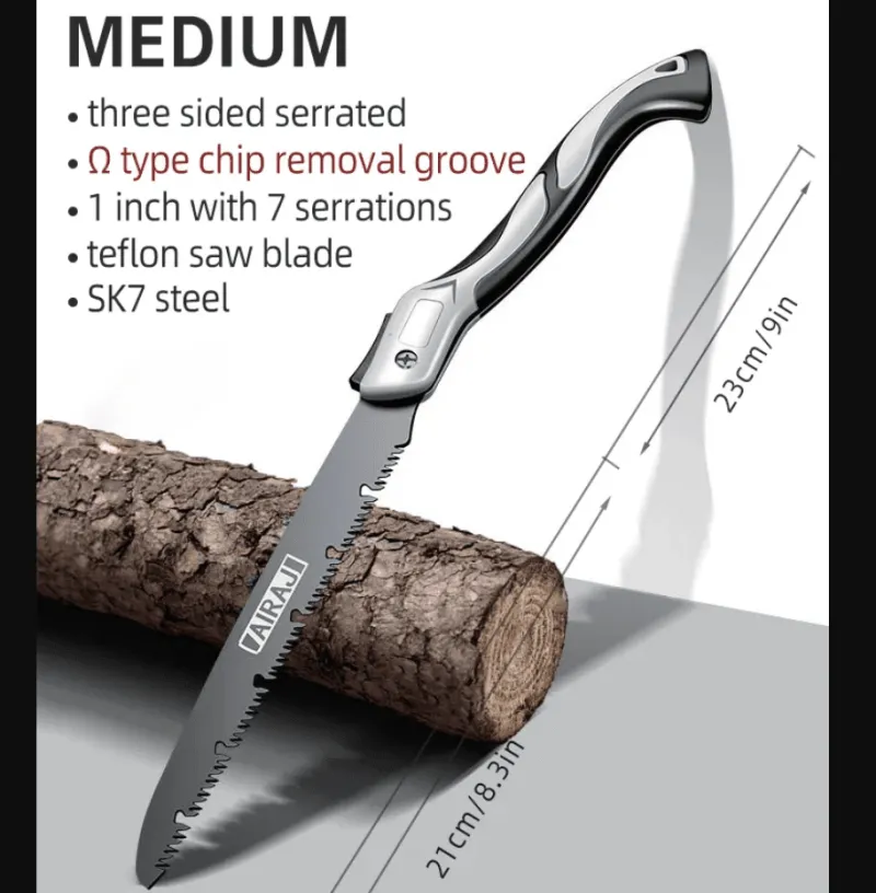 Entdecken Sie die Vielseitigkeit dieser tragbaren, zusammenklappbaren Handsäge – ein unverzichtbares Werkzeug für Holzbearbeitungs-, Camping- und Bastelbegeisterte. Die Säge ist sowohl tragbar als auch effizient und verfügt über ein scharfes, langlebiges Sägeblatt, das sich nahtlos in den Griff einklappen lässt und so die Aufbewahrung und den Transport erleichtert. Ob Sie Holzarbeiten durchführen oder Outdoor-Aktivitäten wie Camping genießen – diese Handsäge eignet sich perfekt zum Sägen von Holz, zum Entfernen von Ästen oder zum Sammeln von Brennholz. Dank ihres leichten Designs passt sie bequem in Ihre Werkzeugtasche oder Ihren Rucksack, sodass Sie für alle anfallenden Schneidarbeiten gerüstet sind.