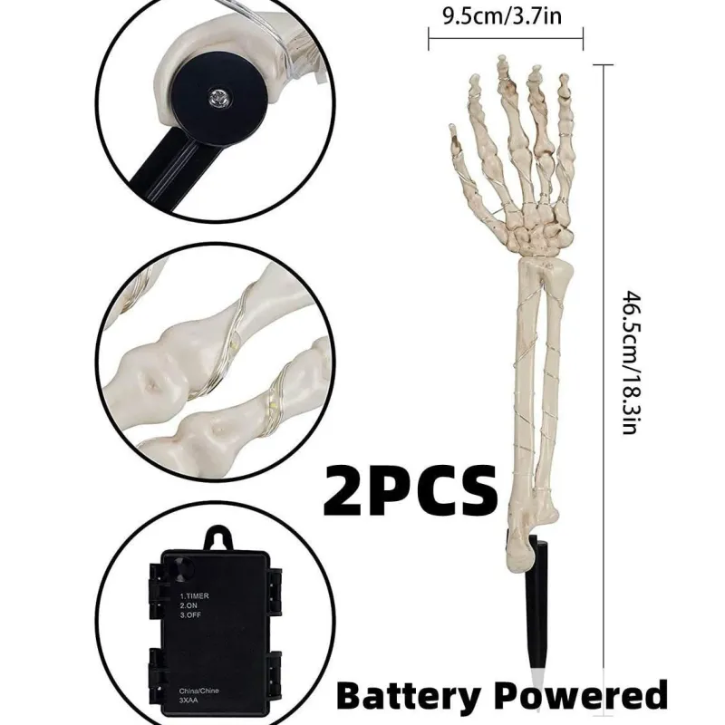 Verwandeln Sie Ihre Außenumgebung mit diesen bezaubernden Solarleuchten mit Skelettarm, die sich perfekt dazu eignen, zu Halloween und darüber hinaus eine festliche und einladende Atmosphäre zu schaffen.