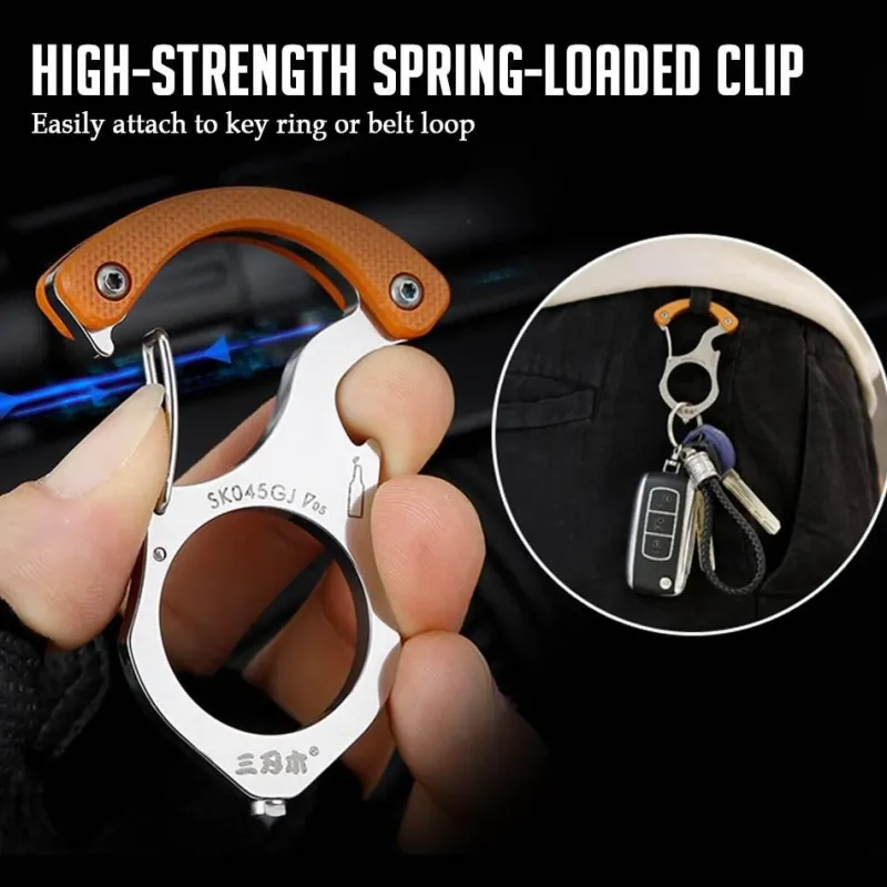Entdecken Sie den praktischen und vielseitigen Multi-Tool-Ring-Schlüsselanhänger – ein unverzichtbarer Begleiter für Ihre Outdoor-Abenteuer und alltäglichen Aufgaben. Dieser Schlüsselanhänger aus robustem Edelstahl vereint Funktionalität und Komfort mit integriertem Flaschenöffner, Glasbrecher und sicherem Schlüsselring.