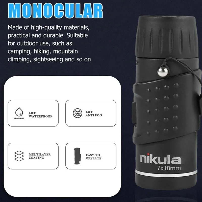 Erkunden Sie die Natur mit dem tragbaren Mini-Monokular-Teleskop, das Fernsichten scharf stellt. Ob beim Camping, bei der Vogelbeobachtung oder beim Spaziergang durch den Garten – dieses kompakte Teleskop bietet Ihnen eine klare und nahsichtige Perspektive auf die Welt um Sie herum. Dank seiner robusten Konstruktion hält es den Strapazen von Outdoor-Abenteuern stand, und dank seines leichten Designs lässt es sich überallhin mitnehmen.