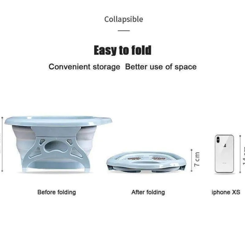 Gönnen Sie sich ein erholsames Erlebnis mit unserem faltbaren Fußbad-Massagegerät, das Ihre müden Füße verwöhnt und gleichzeitig wohltuend pflegt. Tauchen Sie Ihre Füße einfach in warmes Wasser und genießen Sie eine sanfte Massage, die Ihre Fußsohlen entspannt, revitalisiert und beruhigt. Dieses innovative Fußbad fördert die Durchblutung, stärkt die Hautvitalität und trägt zu Ihrem allgemeinen Wohlbefinden bei.