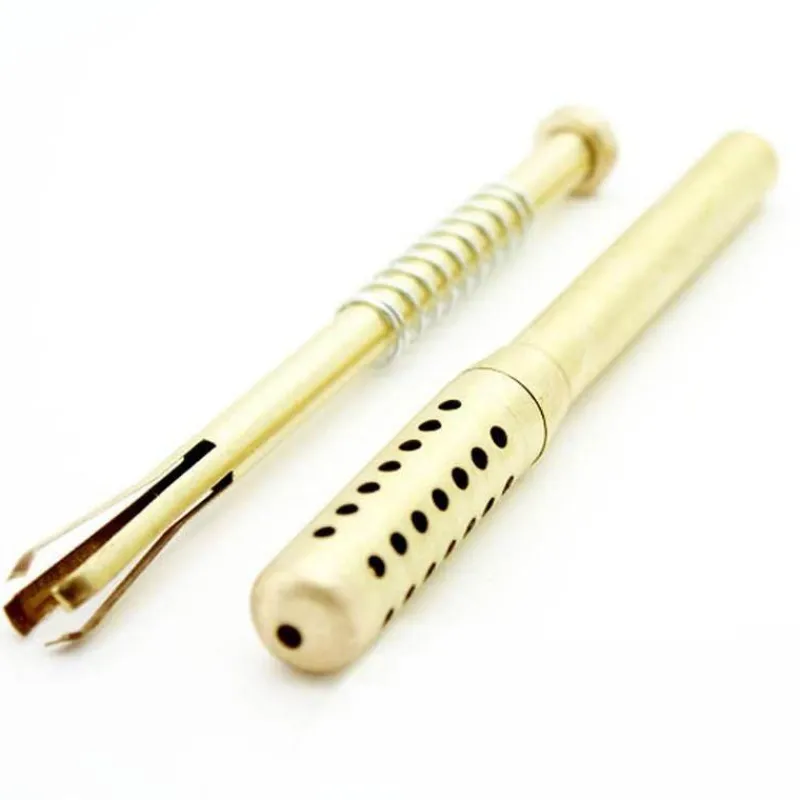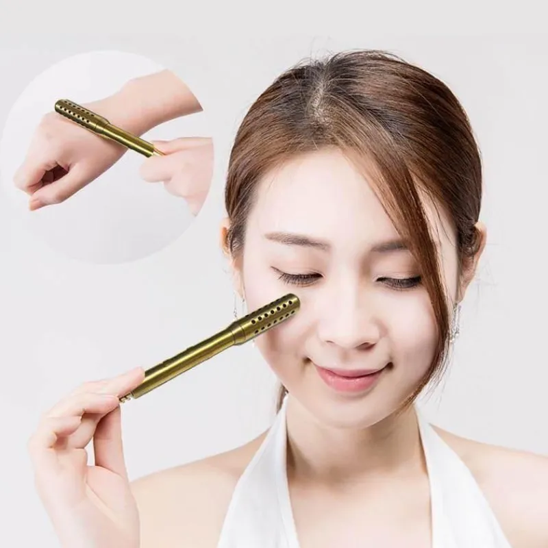 Ausgestattet mit einem brennenden Moxa-Stick erzeugt das Massagegerät eine wohltuende Wärme, die das verchromte Messing und die verstellbare Außenhülle erwärmt. Diese durchdachte Konstruktion sorgt bei jeder Anwendung für Komfort und Effektivität.