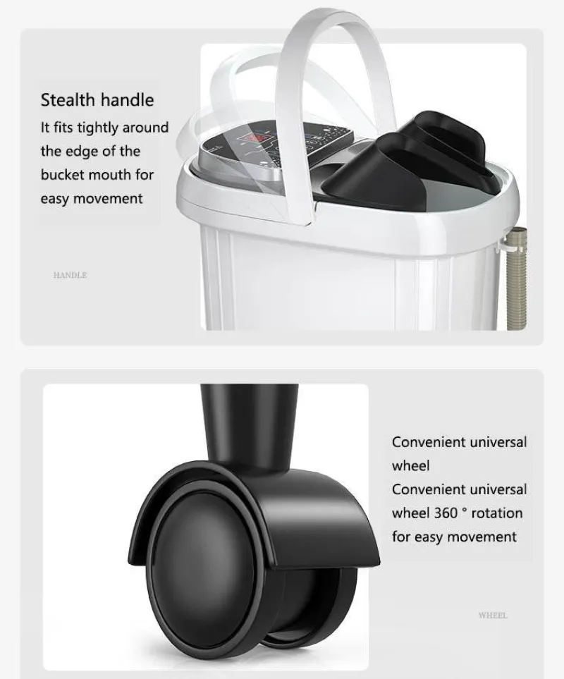 Dieses Fußmassagebad ist benutzerfreundlich gestaltet und verfügt über einen ausziehbaren Griff für mühelosen Transport und Lagerung. Ein integriertes Fach bietet Platz für Spa-Utensilien und sorgt für Ordnung und eine stressreduzierende Atmosphäre in Ihrem Zuhause.
