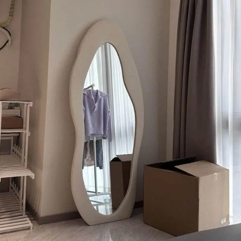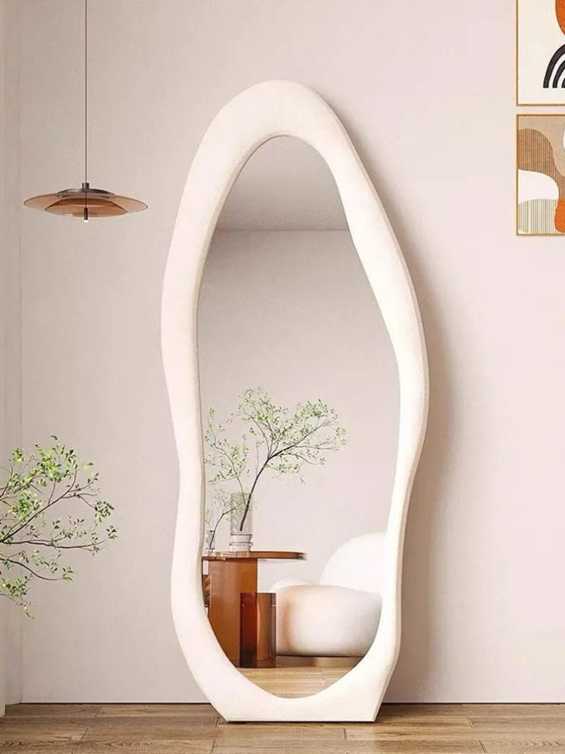 **Wie schneidet dieses Produkt im Vergleich zu anderen ab?** Im Gegensatz zu herkömmlichen Spiegeln, die auf Standardformen beschränkt sind, besticht dieses wellenförmig geschwungene Design durch seine unverwechselbare Form und seinen modernen Charme und ist damit sowohl ein praktisches Accessoire als auch ein Ausdruck künstlerischen Geschmacks.