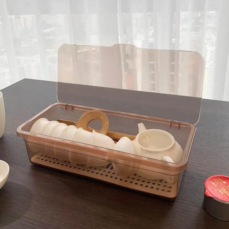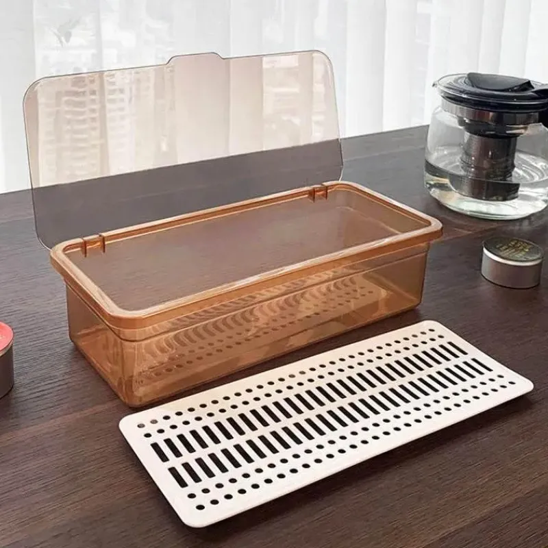 Wir präsentieren den eleganten Teeservice-Organizer, eine sorgfältig gestaltete Aufbewahrungslösung mit Deckel und Löffel, die Ihre Teeutensilien schön geordnet hält. Hergestellt aus hochwertigem Polypropylen (PP) besticht dieser Organizer durch seine moderne Ästhetik, die durch die glänzende Oberfläche und die schlanke rechteckige Form hervorgehoben wird und jeden Raum bereichert.