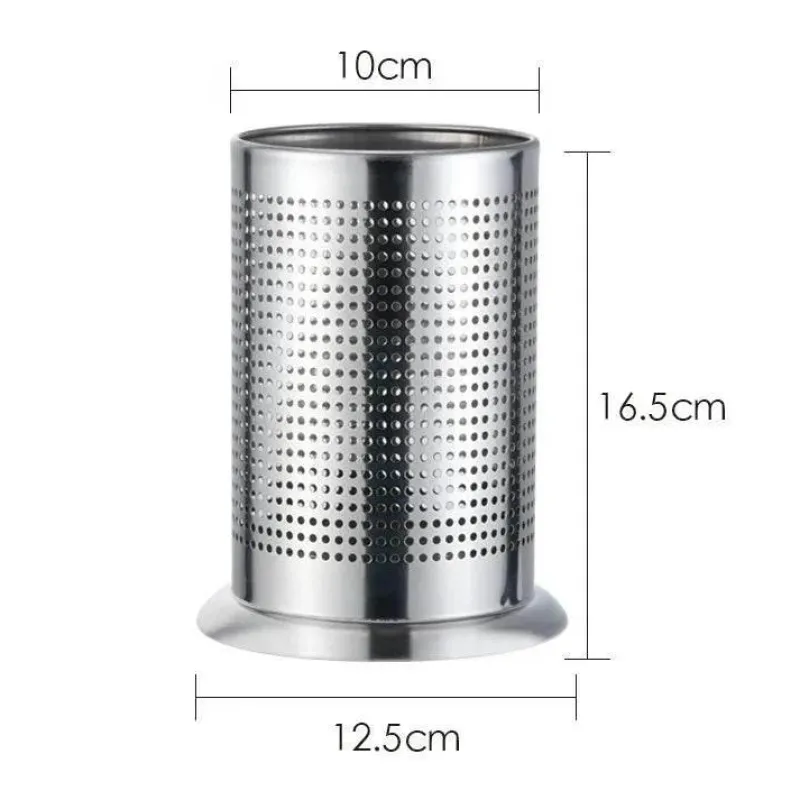 Dieser Utensilienhalter aus hochwertigem Edelstahl ist langlebig und überzeugt gleichzeitig durch seine moderne Ästhetik. Mit seinen kompakten Abmessungen von 17 x 10 cm fügt er sich nahtlos in verschiedene Küchenumgebungen ein und ermöglicht die effiziente Aufbewahrung von Besteck und Geschirr, ohne übermäßigen Platzbedarf zu beanspruchen.
