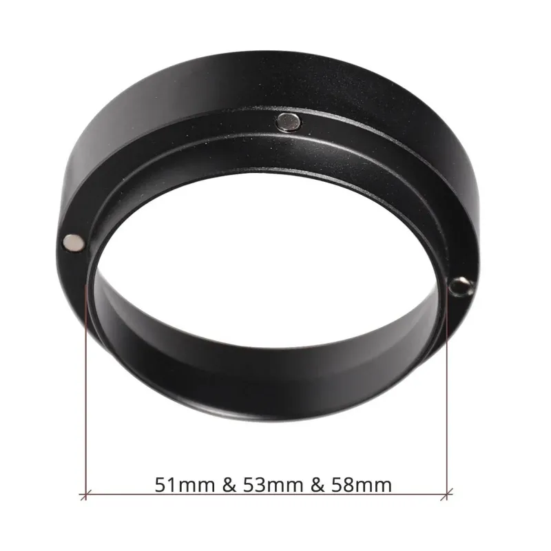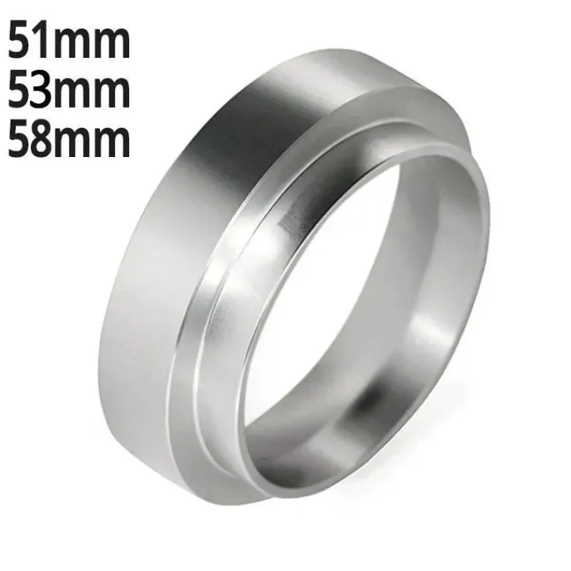 Der Espresso-Dosierring verfügt über einen flachen Tamperboden, der nahtlos in Ihren Siebträger passt und Ihrem Kaffee-Setup ein sauberes und professionelles Aussehen verleiht. Erhältlich in drei Größen – 51 mm, 53 mm und 58 mm – ist er mit einer Vielzahl von Espressomaschinen und -konfigurationen kompatibel.