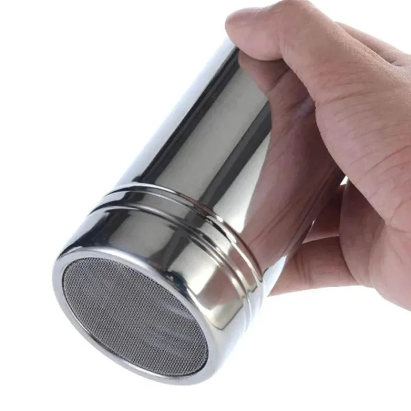 Veredeln Sie Ihr Kochen und Backen mit diesem elegant gestalteten Kakaopulverstreuer. Dieser vielseitige Spender aus hochwertigem Edelstahl eignet sich perfekt zum Bestäuben von Kaffee, Kakao und anderen Gewürzen und verfeinert Getränke und Desserts mühelos. Seine elegante Ästhetik verleiht Ihrer Küche einen stilvollen Touch und sorgt gleichzeitig für Langlebigkeit und Verschleißfestigkeit.