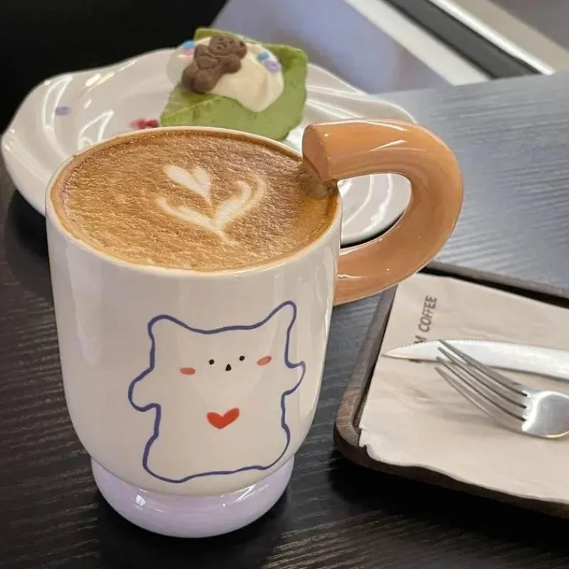 Wir präsentieren unsere bezaubernde Keramiktasse – eine charmante Ergänzung für Ihr Kaffee- oder Teeritual. Diese hochwertige Tasse aus Bone China vereint Eleganz und Langlebigkeit und ist die ideale Wahl für den Genuss Ihrer Lieblingsgetränke. Das originelle Griffdesign unterstreicht die Attraktivität der Tasse und verleiht Ihrer Sammlung eine verspielte Note im koreanischen Stil.