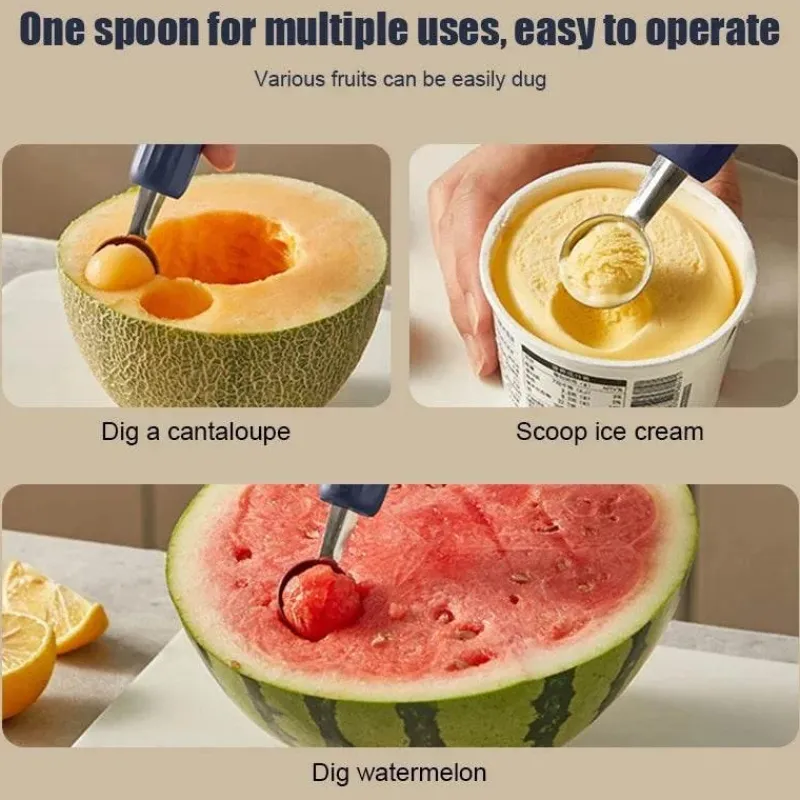 Mit diesem Mehrzweckwerkzeug können Sie mühelos perfekt runde Fruchtkugeln formen oder Eiscreme gleichmäßig portionieren und so Ihren Dessertpräsentationen einen Hauch von Eleganz verleihen. Ob Sie Obstsalate zubereiten, Gerichte garnieren oder Eiskugeln servieren – dieses Werkzeug ist für jeden kulinarischen Liebhaber von unschätzbarem Wert.