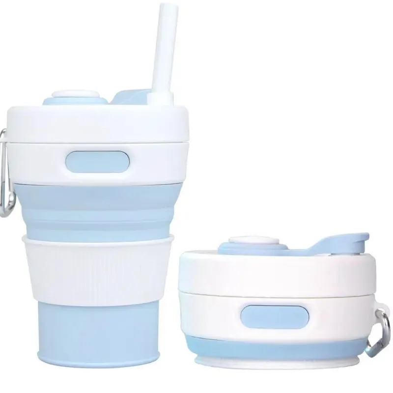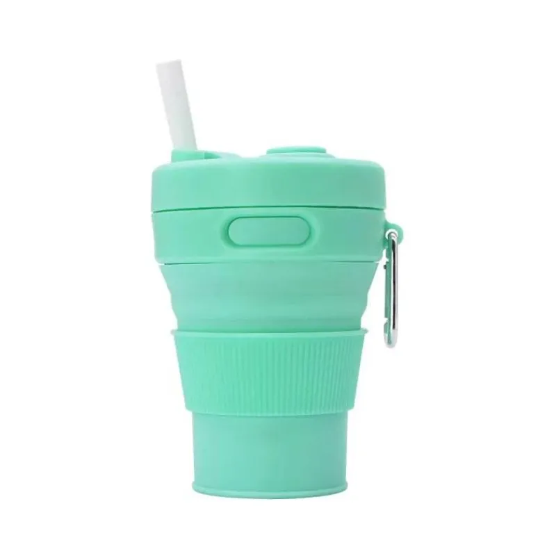 1 x wiederverwendbarer, tragbarer, zusammenklappbarer Trinkbecher zum Mitnehmen.