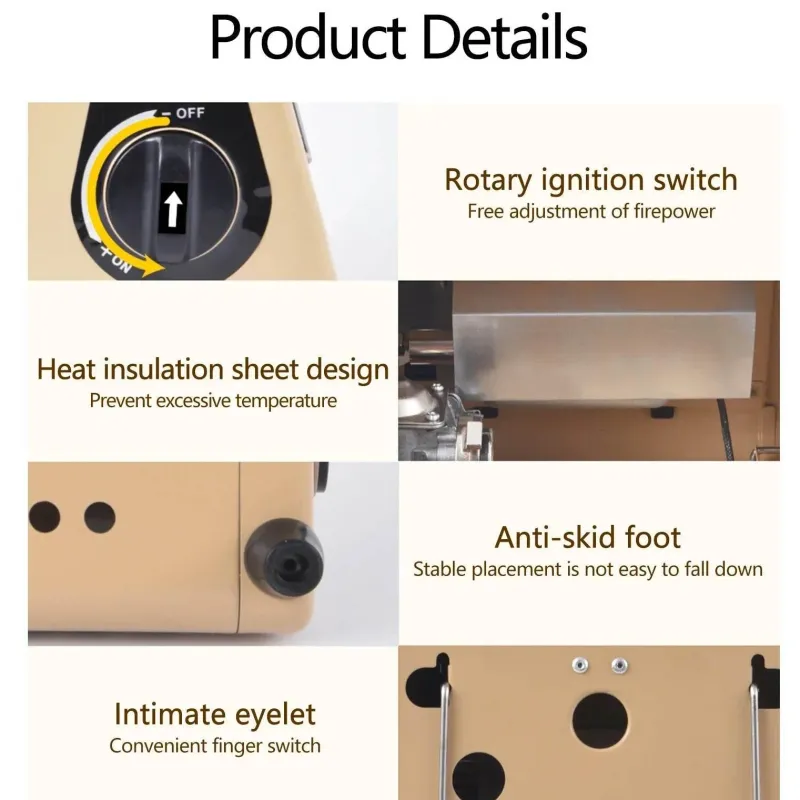 Erleben Sie den Komfort eines tragbaren Heizgeräts, das speziell für Camping-Fans entwickelt wurde, die die Wärme in der freien Natur lieben. Dieser kompakte Campingkocher verfügt über einstellbare Heizstufen, sodass Sie die Wärme in kühlen Nächten unter freiem Himmel ganz nach Ihren Bedürfnissen anpassen können. Ob Sie eine Mahlzeit zubereiten oder einfach nur die abendliche Kälte abwehren möchten – dieser Kocher liefert gleichmäßige Wärme und sorgt für ein unvergessliches Outdoor-Erlebnis. Sein leichtes und tragbares Design macht ihn zu einem unverzichtbaren Begleiter für jeden Campingausflug und sorgt dafür, dass Sie es gemütlich haben, egal wohin Ihre Abenteuer Sie führen.