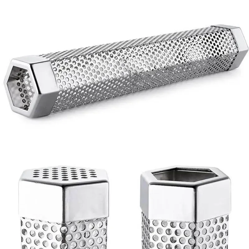 Verbessern Sie Ihr Grillerlebnis mit unserem fachmännisch gefertigten BBQ-Räucherrohr aus Edelstahl, das Ihren Speisen ein intensives Raucharoma verleiht. Die einzigartige sechseckige Form sorgt für eine optimale Rauchverteilung und sorgt dafür, dass Ihr Fleisch und Gemüse mit jedem Bissen ein unwiderstehliches Aroma erhält. Das Räucherrohr aus robustem 304 Edelstahl ist hitzebeständig und korrosionsbeständig und garantiert so zuverlässige Leistung für viele Grillsaisons.