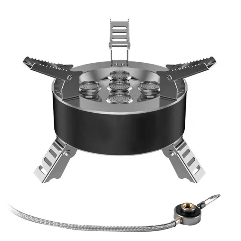 Für zusätzliche Stabilität auf unebenem Gelände verfügt der Ofen über zusammenklappbare Beine, die seine Zuverlässigkeit bei jedem Outdoor-Abenteuer erhöhen.