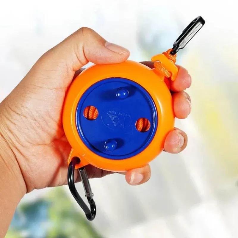 Diese tragbare Reisewäscheleine ist speziell für den Einsatz im Freien konzipiert und bietet eine effiziente Lösung zum Trocknen von Kleidung beim Camping oder auf Reisen. Dank ihrer kompakten und leichten Bauweise lässt sie sich einfach zusammenfalten und platzsparend in Rucksäcken, Koffern oder Campingausrüstung verstauen.