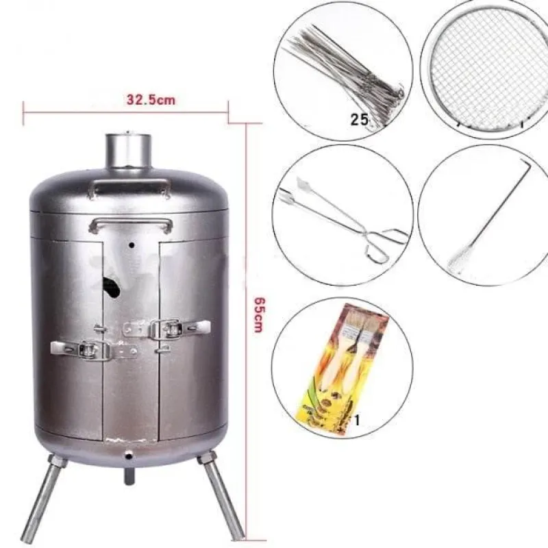 Entdecken Sie die Freude am Kochen im Freien mit unserem tragbaren, rauchfreien All-in-One-Campinggrill. Er wurde für Outdoor-Fans entwickelt, die gerne grillen und die Natur genießen. Dieser robuste Grill aus hochwertigem Edelstahl ist mobil und verfügt über einen integrierten Griff und praktische Haken für den einfachen Transport. Dank seines kompakten und leichten Designs können Sie ihn mühelos überallhin mitnehmen und aufstellen, wohin Ihre Abenteuer Sie auch führen.