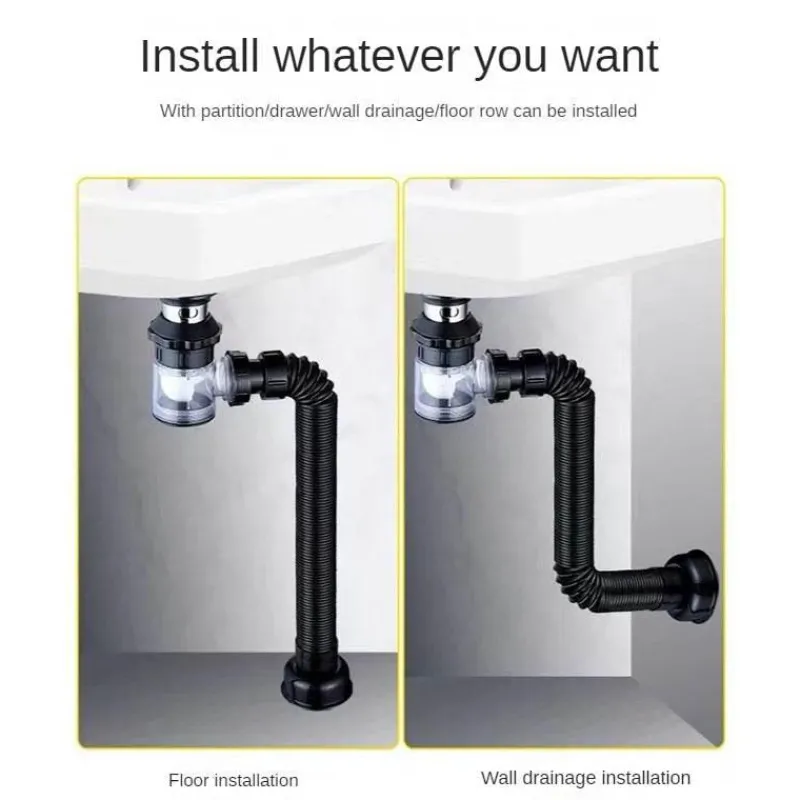 Hergestellt aus robusten Materialien wie Edelstahl und ABS garantiert das Universal Easy Drain Faltrohr dauerhaft gleichbleibende Leistung. Sein innovatives S-Bogen-Design ermöglicht einfaches Biegen und Formen und erfüllt so unterschiedliche Entwässerungsanforderungen, ohne dass mehrere starre Rohre zugeschnitten und verbunden werden müssen. Dieses Design schließt zudem effektiv Gerüche ein und trägt so zu einem saubereren und angenehmeren Raumklima in Ihrem Zuhause bei.