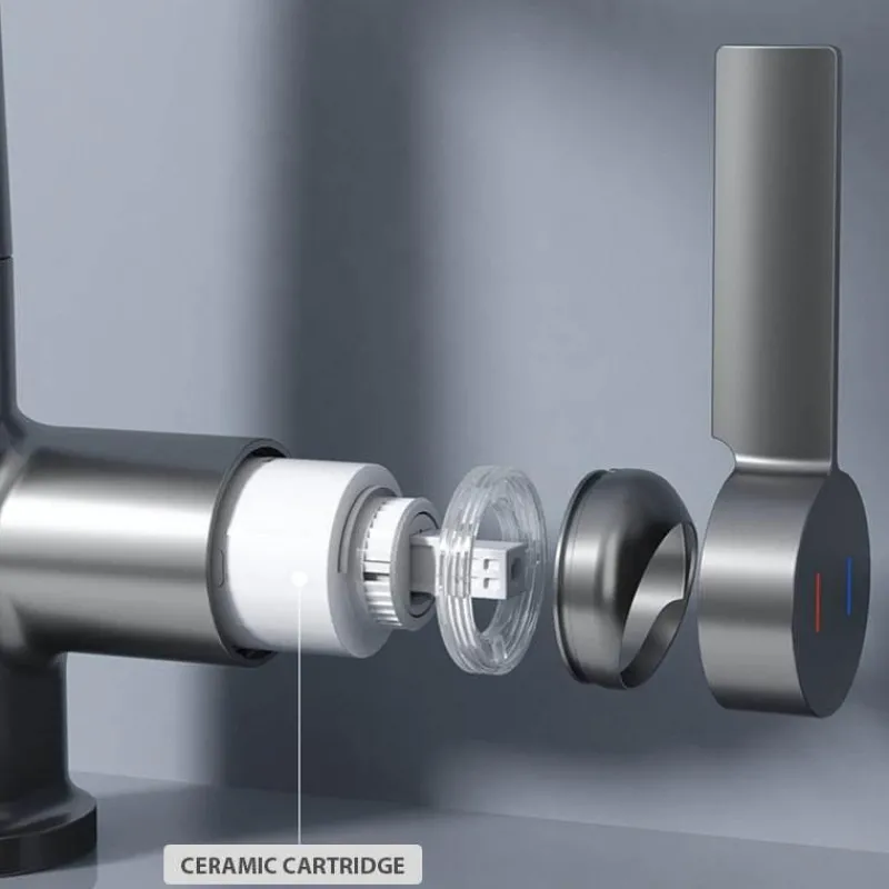 Werten Sie Ihr Zuhause mit dem modernen, eleganten Wasserfall-Wasserhahn mit praktischer Temperaturanzeige auf. Dieser Wasserhahn vereint Eleganz und Funktionalität und ist somit die ideale Ergänzung für Küche und Bad. Sein modernes Design, ergänzt durch den faszinierenden Wasserfall, schafft eine beruhigende Atmosphäre, während die integrierte Temperaturanzeige dafür sorgt, dass Ihr Wasser bei jeder Anwendung die optimale Temperatur hat.
